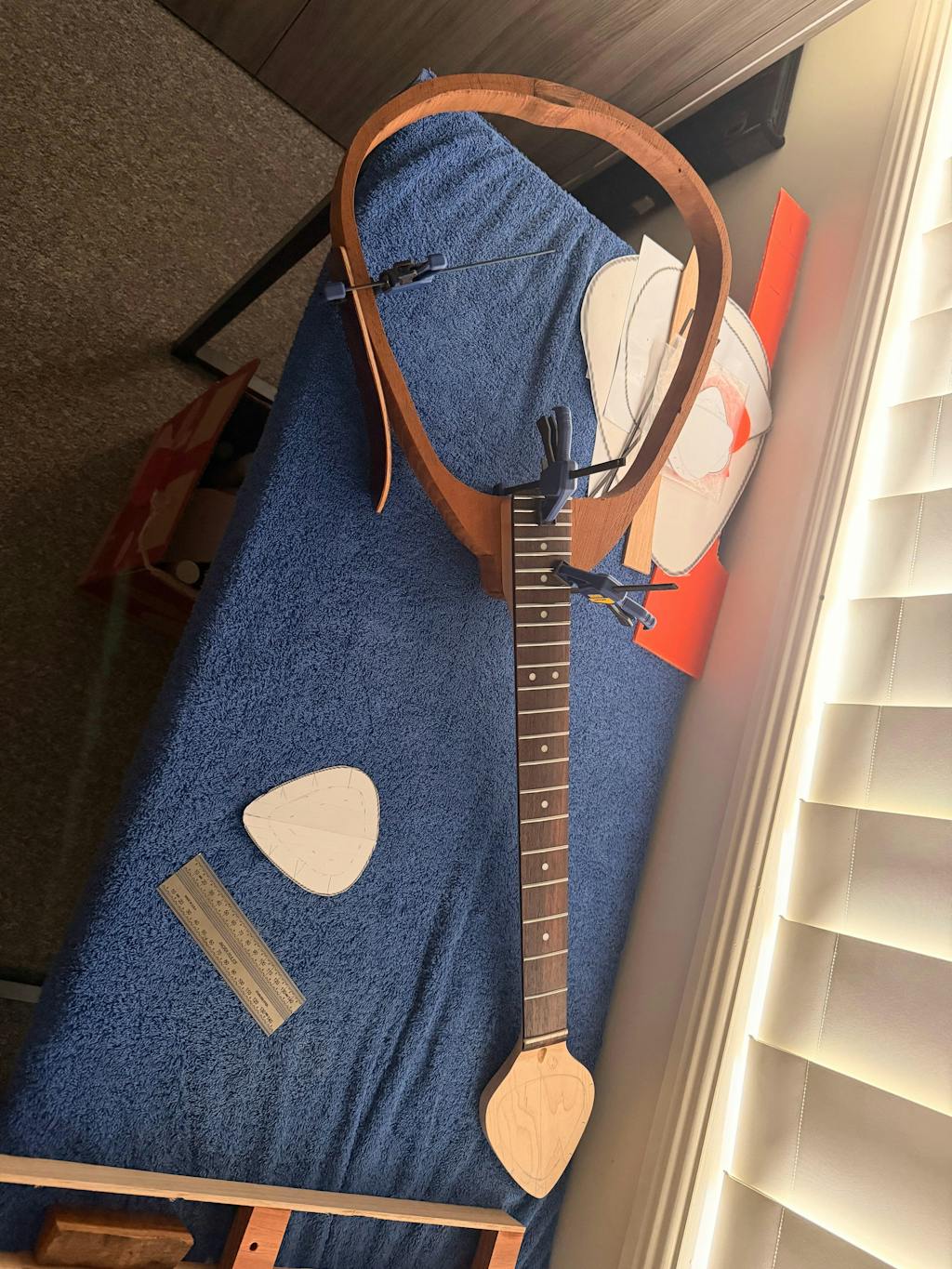 Mark sent me 2 amazing pieces of perfectly quarter sawn cedar boards that are in the process of becoming the sides of a plectrum shaped guitar. While it won't surf very well, it will sound better than his surfboards (grin) - quality product, quick delivery, a great deal
